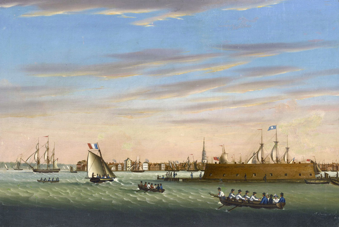 The painting, “View of Charleston, c. 1831,” by Samuel Barnard, is shown at the top of this website’s pages. The entire painting, uncropped, is shown immediately above. (Courtesy of Yale University Art Gallery — Mabel Brady Garvin Collection)