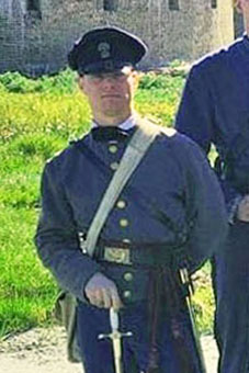 The nine cadets, wearing 1858 Citadel era uniforms, landed at Shute’s Folly about 1:30 p.m., disembarked and entered the Castle Pinckney’s Sally Port. After receiving a safety briefing and orientation, Cadet Quartermaster Girsh drilled the four cadets on the rifle team while acting Cadet Sergeant Joshua Crosby drilled four other cadets on the flag raising team for the ceremony they were about to perform.