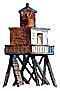 *More on the Beacon at Castle Pinckney -- A yellow tower, which included a beacon, was constructed at Castle Pinckney in 1855 prior to the War Between the States. The beacon had a 5th order, non-rotating Fresnel lens and a focal plane of 50 feet that permitted its light to be visible at a great distance. The masthead at the top of this page, showing the tower with its beacon at left, was produced from the engraving published in 1861 by Harper's Weekly shortly after the war began (see engraving). In the 1866 chart at the bottom of this page, the beacon is also identified next to Castle Pinckney on Shute's Folly.